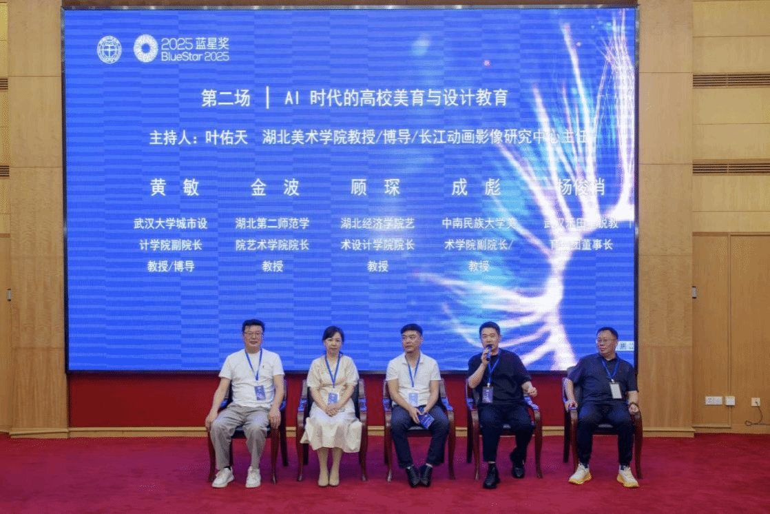 色彩研究中心主任肖世孟教授参与首场论坛。第二场论坛聚焦“AI时代的高校美育与设计教育”,由湖北美术贝博体育