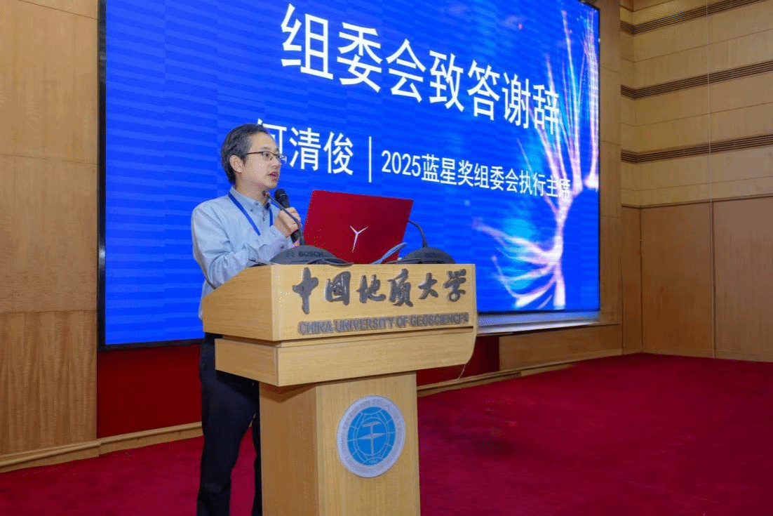 活动伊始,中国地质大学(武汉)副校长章军锋、中国自然资源学会副理事长左其亭分别致辞。章军锋副校长指出,蓝星奖大赛以“自然与文化遗产”为主题,旨在激励青年学子以创意设计推动文化资源与现代设计深度融合,为文化遗产保护注入新活力。中国自然资源学会左其亭副理事长认为大赛构建了重要的跨学科国际交流平台,通过设计实践生动传递了人与自然和谐共生的理念,对自然与文化遗产的多样性保护具有重要意义。