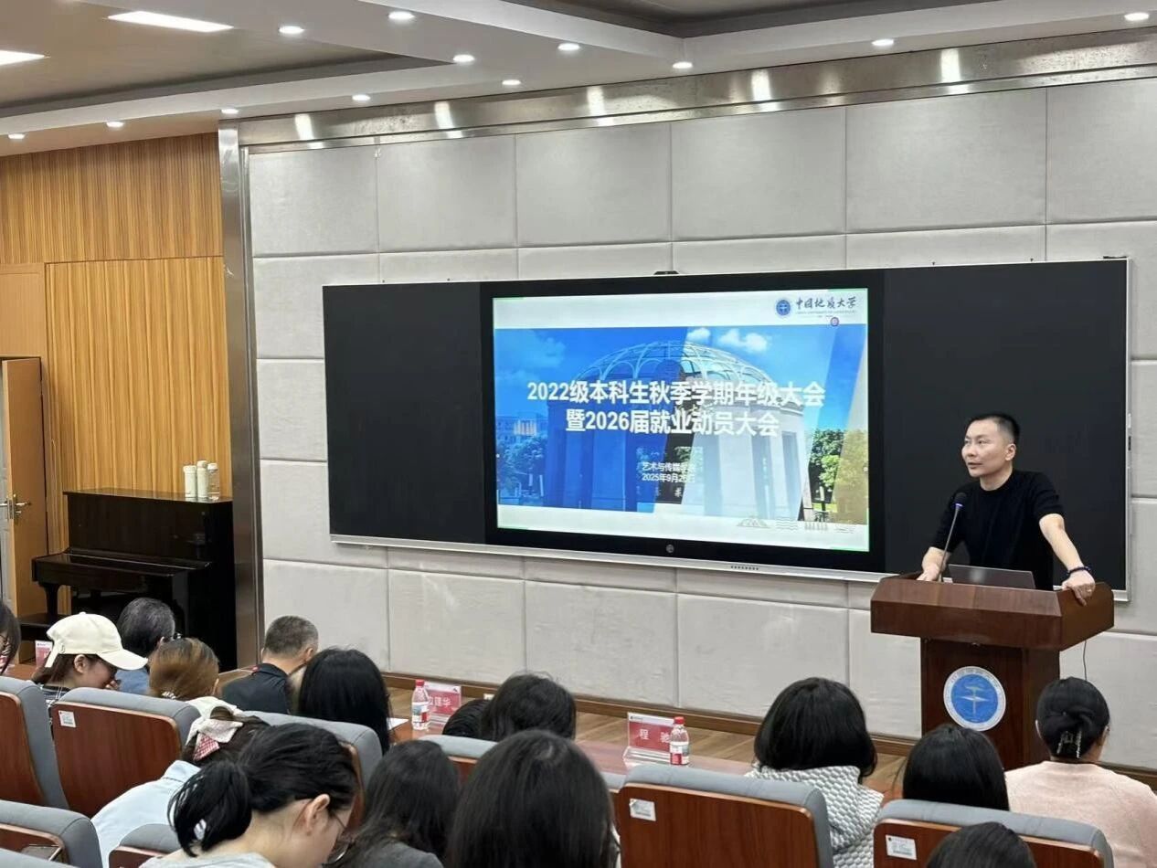 2022级年级大会暨就业动员大会在艺媒楼1114报告厅举行。院长何清俊,党委副书记边建华,视觉与媒体设计系系主任狄丞,环境设计系系主任李待宾,环境设计系系副主任程驰,音乐系系副主任杨青,新闻传播系专业教师、2026届毕业班班主任李静,学工组专职辅导员曾戈晖,兼职辅导员黄灿以及2022级全体学生参加本次大会。此次年级大会由辅导员曾戈晖主持,聚焦2022级本科生关切的最新考研政策、毕业发展规划指导两大核心议题,为同学们搭建起清晰的成长指引平台。