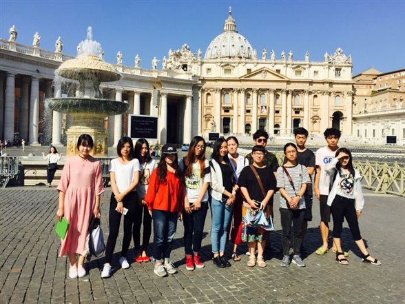 9月1日,这是写生实习小组在罗马进行参观活动的最后一天。大家来到了马老师夸赞不已的圣彼得大教堂。幸运的是在教堂前排队的人群还不算太多,没太久便进入到了这座人类艺术史上不得不提的宏伟建筑中。这座教堂比这次旅程中所见到的所有教堂都要精美宏大,它是包括米开朗基罗在内的许多文艺复兴时期的优秀建筑师共同创造的奇迹。往教堂内部走,右侧是著名的雕像《圣殇》,圣母抱着死去的耶稣,面容上流露出悲痛。这也是米开朗基罗唯一一座署名的雕像。殿堂中部是贝尔尼尼所建造的青铜华盖,据资料记载,华盖下方是祭坛和圣彼得之墓,只有教皇才可以在这座祭坛上,面对东升的旭日,为朝圣者举行弥撒。老师带着同学们走走停停,小声的为大家讲解这教堂中艺术品背后的历史。可惜的是教堂内仍有很大空间不对普通游客开放,所以同学们没能赏尽教堂全景。