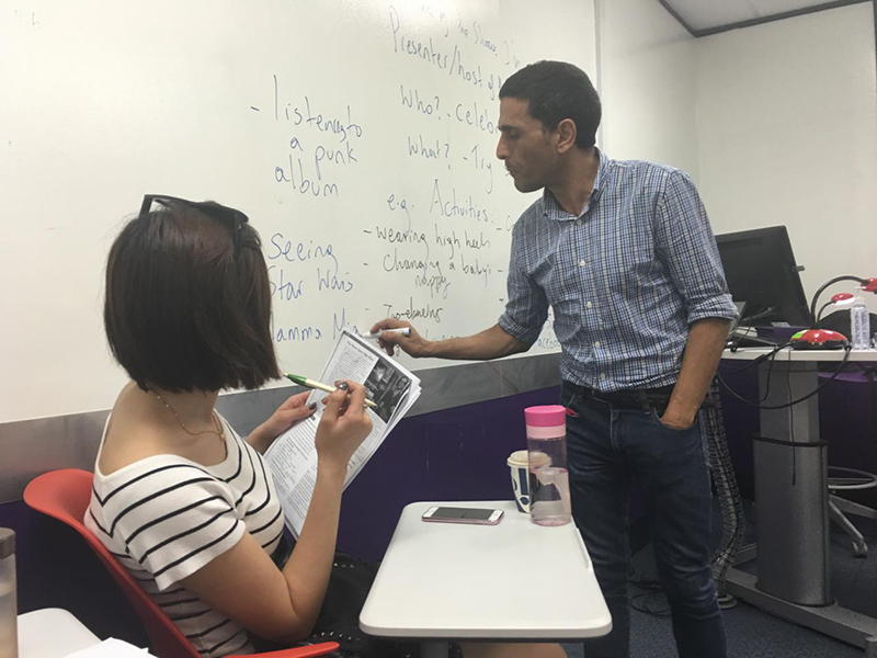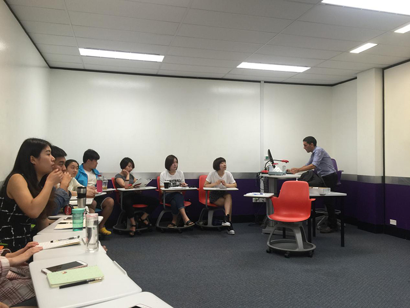 结束了关于舞蹈的讲座后我们开始继续进入英语课程的学习,Macquarie University的老师根据我们的专业,设置了与之相关的英语口语练习。在教学过程中,运用灵活的教学方法,以提问的方式让学生独立自主的思考(图4)。老师对于课堂的教学起引导作用,同时小班教学可以保证每节课几乎每一位同学都有机会用英语回答问题,教学效率高。自主学习加深了我们对于知识的记忆,通过自己组织语言以及表达,增强学生的自信心,在记忆的同时能准确的运用所学到的词汇。根据每个人不同的学习程度提出不同的问题,有较强的针对性。这种课堂教学能保证每位学生的学习质量,同时也能让同学们更牢固的掌握知识。