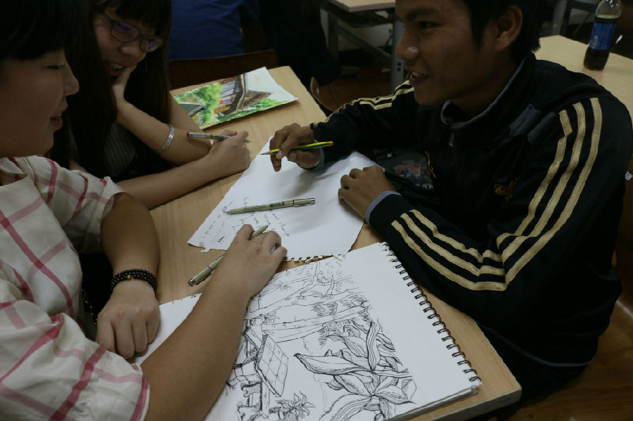 九月九日,老挝写生组受老挝苏发努冯大学建筑贝博体育 邀请前往该校交流,交流活动主要包括:首先,写生组教师为建筑贝博体育 师生进行专业讲座,以写生组同学作品为例介绍贝博体育 艺术教育的教学思路和认识方法,其次,建筑贝博体育 教师陪同写生组师生参观贝博体育 教学设施及环境,最后建筑贝博体育 同学与写生组同学分组交流。