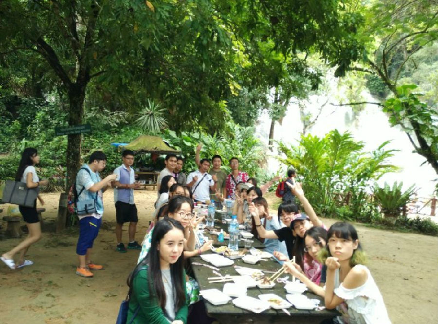 9月10日,苏发努冯大学建筑贝博体育 师生邀请老挝写生组一同参观琅勃拉邦自然景观关西瀑布。光西瀑布景色瑰丽,沿山路上行,时而涉水而行,沿途交流。午间,苏发努冯大学建筑贝博体育 师生与琅勃拉邦写生小组在瀑布前共进老挝传统午餐,回途中,苏发努冯大学建筑贝博体育 老师向我们介绍了当地传统的傣族民居。