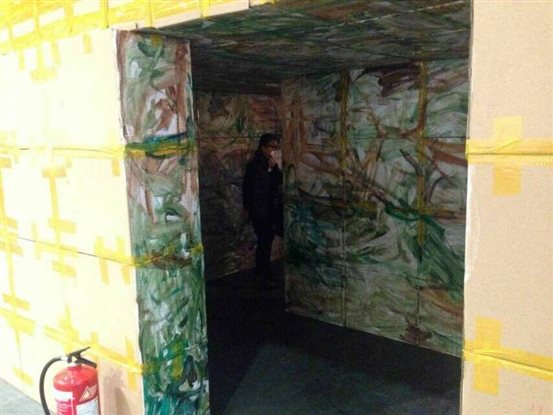 该展区还有很多作品注重互动性,召唤参观者参与。如英国艺术家david shrigley的作品《life model》,在展区中间安放一个比例夸张的人体模特,四周摆满了画架,邀请参观者写生。参观者的作品被贴在四面墙上,成为作品的一部分。当代艺术系教师也饶有兴趣的加入其中,共同赋予作品意义。