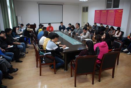 209会议室举行,院长赵冰、院党委副书记徐胜、副院长喻继军及研究生办公室揭俐老师出席座谈,部分2012级、2013级硕士研究生代表参与了此次座谈。院领导们就新的院系名称、具体研究方向及研究生毕业相关问题和学生们展开了面对面交流,并对学生们较为关心的问题进行现场答疑解惑,现场气氛十分热烈。