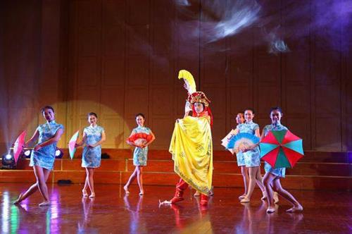 罗文旭老师和肖泽朦老师演绎的《新贵妃醉酒》将晚会推向了一个高潮。肖泽朦老师的舞蹈和罗文旭老师的反串引得在场观众连连尖叫。音乐系2011级学生雷云连呼,“老师的表演太给力了!”