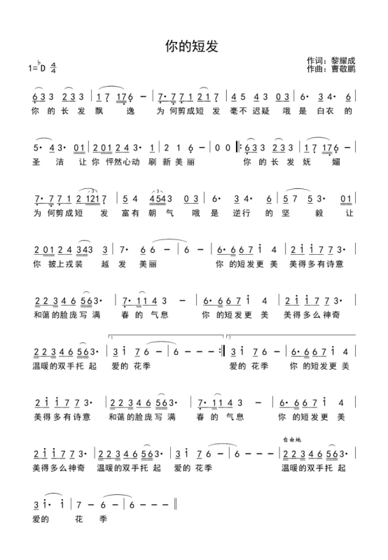 《你的短发》由中国音乐家协会黎耀成作词,中国地质大学(武汉)贝博体育