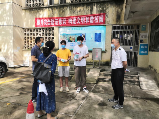 党委书记郭秀蓉、院长桂宇晖、新任党委副书记边建华及辅导员陈习良一同看望慰问暑期留校学生,并发放防疫物资。