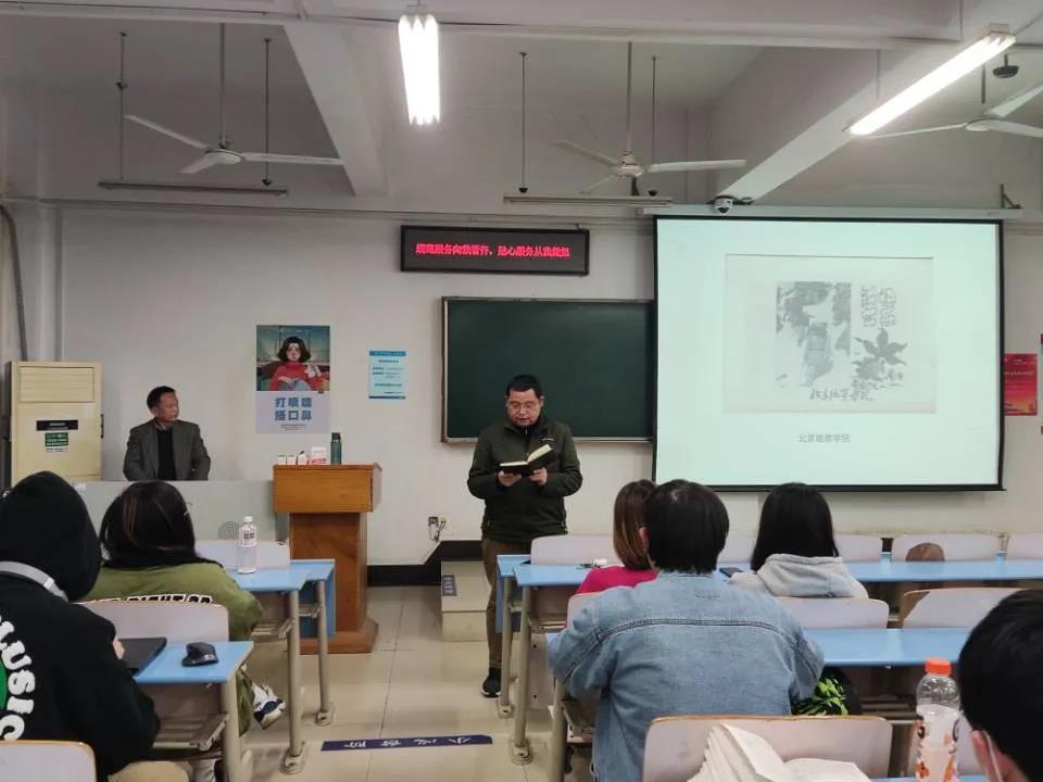 副院长彭静老师开场主持,介绍讲座主讲人、致辞并宣布讲座开始。本次讲座嘉宾是武汉美术馆原副馆长刘宇老师主讲,中国地质大学(武汉)陈华文老师作讲座总结。