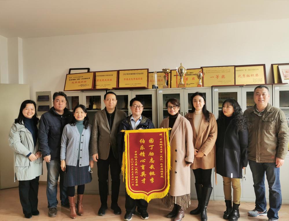 为地大附属学校送来了优质的美育师资队伍,希望今后继续支持附属学校的建设和发展”。中国地质大学(武汉)附属学校党总支书记张瑞生老师一边激动的说一边将写有“园丁励志我桃李、伯乐精心育英才”感谢锦旗送到了贝博体育