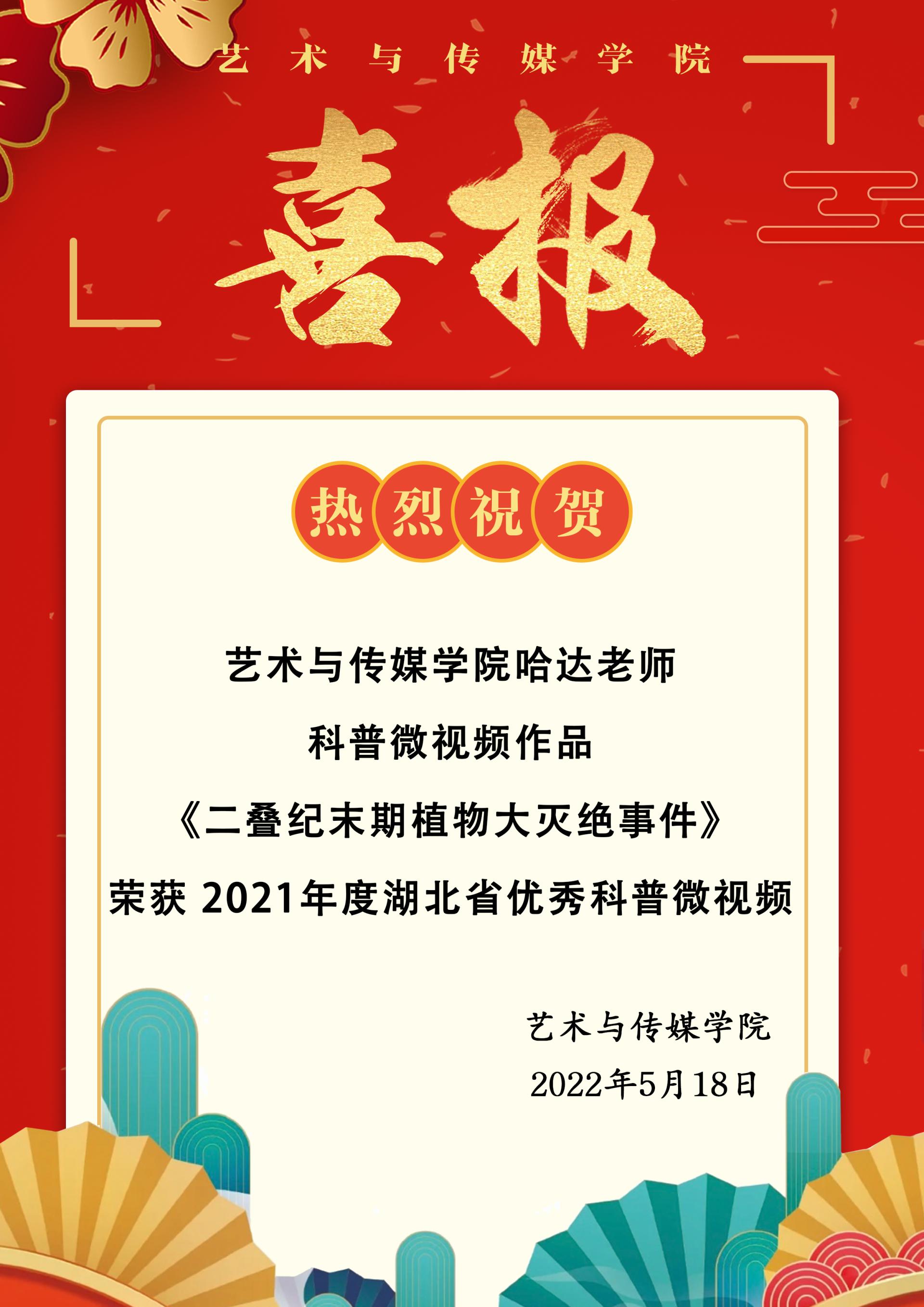 喜报!热烈祝贺贝博体育 哈达老师作品获2021年度湖北省优秀科普微视频