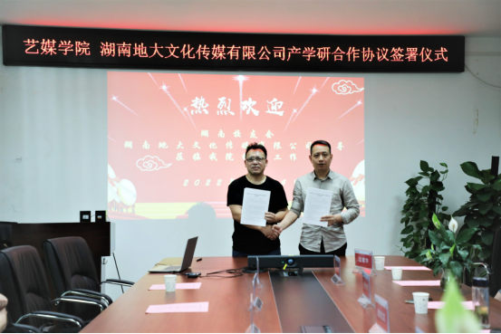 与湖南地大文化传媒有限公司签订产学研全面战略合作协议,副校长赖旭龙、贝博体育