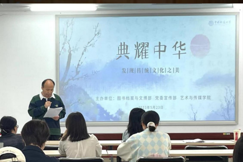 在南望山校区先后举办了2场学术交流,一是《典耀中华-发现传统文化之美》,主讲人是知名纪录片导演海金星,他的作品主要涉及历史、社会和自然,代表作有《千古风流人物》《城市24小时》等,多次获国际国内纪录片大奖。他从自身的创作体验和代表出品出发,分享了影像艺术在传播传统文化中故事化的视觉呈现和场景设计。