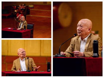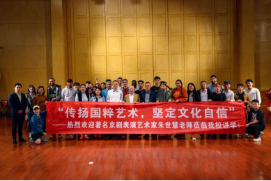 因热爱而坚持,因京剧而坚定。朱世慧老师首先为同学们分享其与京剧结缘的一生,他12岁入梨园门、初学老生、后攻丑角,勤习“四功五法”,与国粹艺术结缘64载,在58岁别人都往二线走时、自己却往一线冲,毅然挑起了湖北省京剧院“掌门人”的重担,虽年逾古稀却至今仍活跃于舞台之上,始终对国粹之美充满文化自信。“青年人,未来是你们的”,朱世慧老师寄语在场的青年学子,不忘时代殷殷嘱托,奋楫争先,勇于创新。