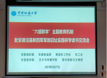 等六个党委理论学习中心组联合组建原著集中学习读书班(以下简称“六组联学”读书班),于2023年5月27日在新四军军部旧址所在地安徽泾县云岭镇认真召开了读书交流会。校工会常务副主席郭秀蓉、图书档案与文博党委书记帅斌、离退休工作党委书记李门楼、图书档案与文博部长刘先国分别依次分享了《习近平著作选读》等原著的学习心得,并作了领学报告,扎扎实实地讲了一堂生动的主题教育专题党课。