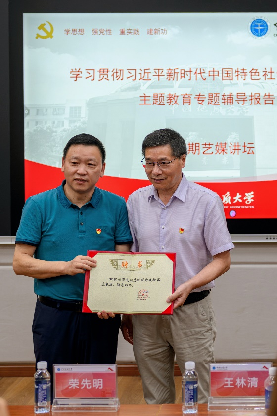 报告开始前,校党委副书记王林清教授为荣先明总编颁发了客座教授聘书。