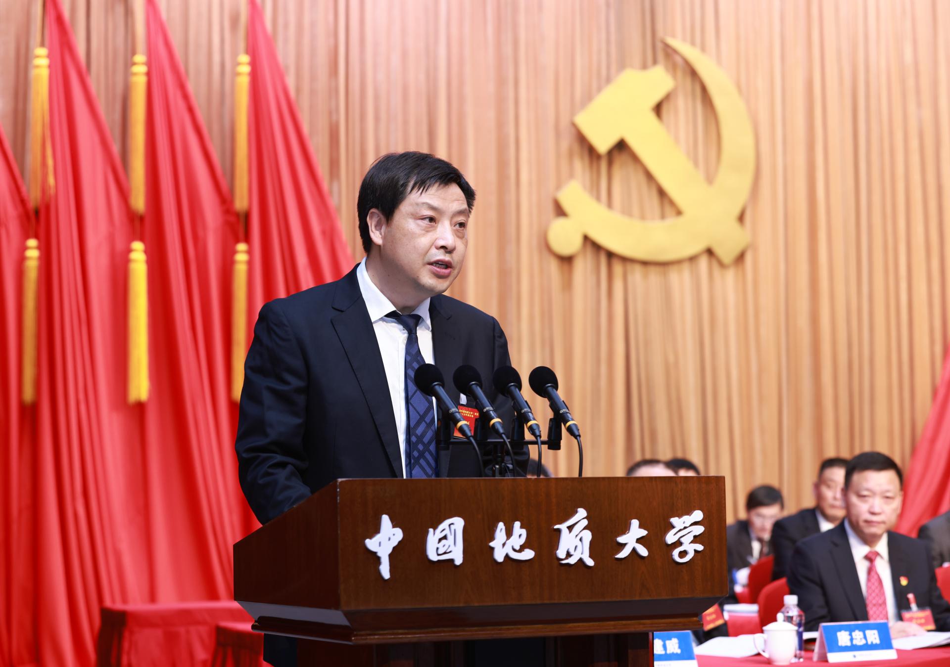 报告从坚持党的全面领导、坚持立德树人、坚持服务国家、坚持改革创新、坚持以人为本、坚持追求卓越六个方面,总结了学校第十二次党代会以来的发展思路和办学经验。报告指出,自第十二次党代会以来,学校党委坚持以习近平新时代中国特色社会主义思想为指导,坚决贯彻落实党中央、教育部党组和湖北省委决策部署,科学统筹疫情防控和事业发展,带领全校各级党组织、全体党员,团结依靠广大师生和海内外校友,圆满完成第十二次党代会确定的主要任务,学校综合实力、核心竞争力和社会影响力显著增强,地球科学领域国际知名研究型大学建设取得新进展。