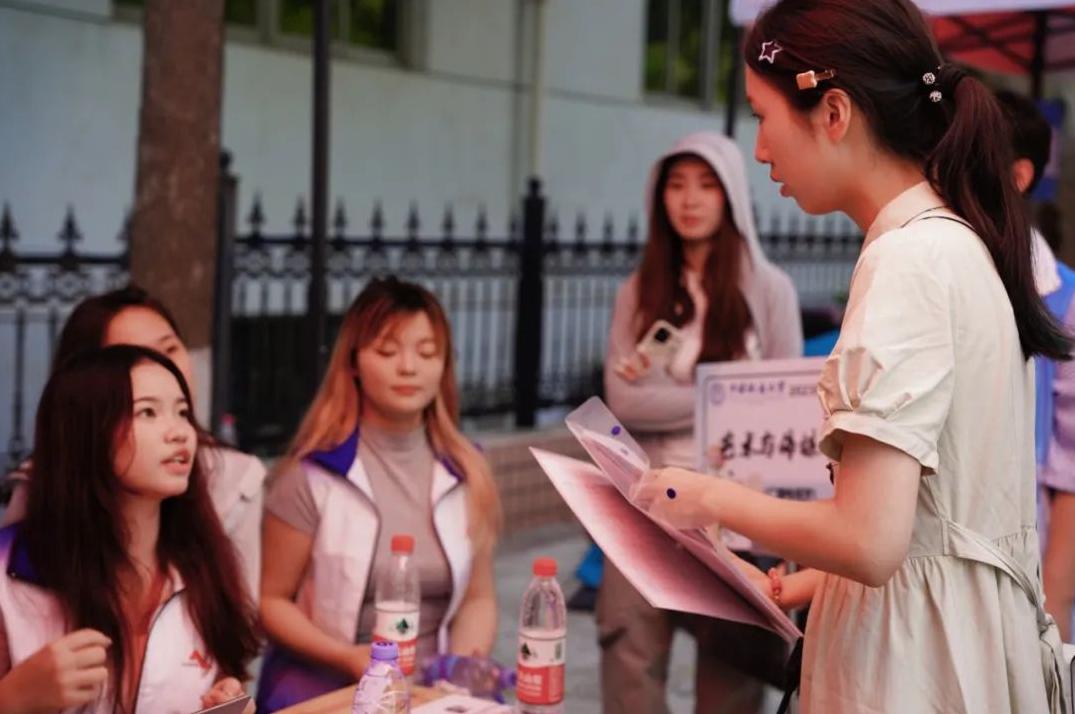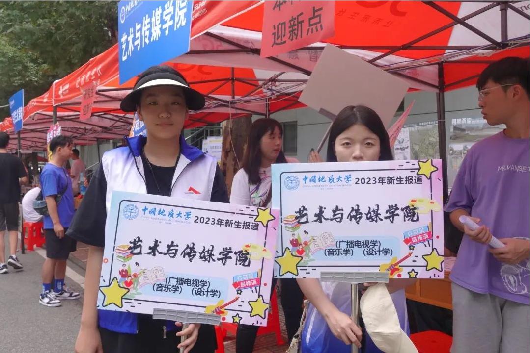 9月5日下午,校党委书记黄晓玫、校长王焰新来到艺媒迎新摊点了解贝博体育
