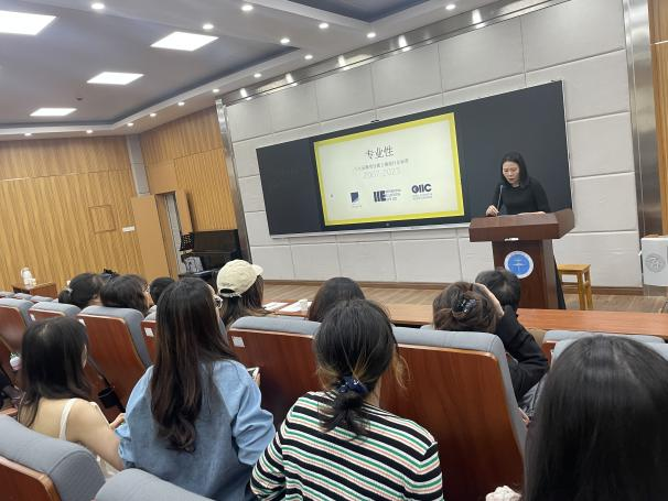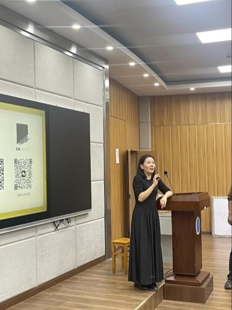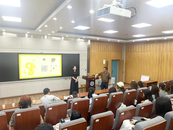 副院长杨喆简单介绍主讲人:朱求真老师在学术方面有自己独到的见解,在插画师同企业协作、插画企业活动等方面有大量的工作经验,有着丰富的一手数据和资料。