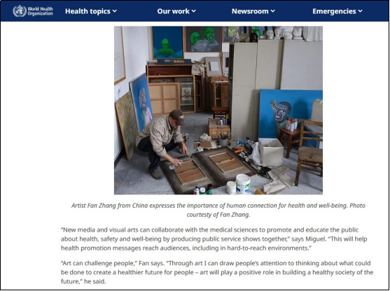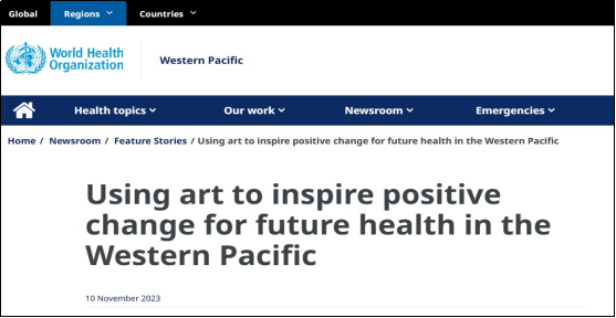近日,世界卫生组织西太平洋区办事处(World Health Organization | Regional Office for the Western Pacific)官方网站在题为“Using art to inspire positive change for future health in the Western Pacific”的专题报道中刊发了贝博体育