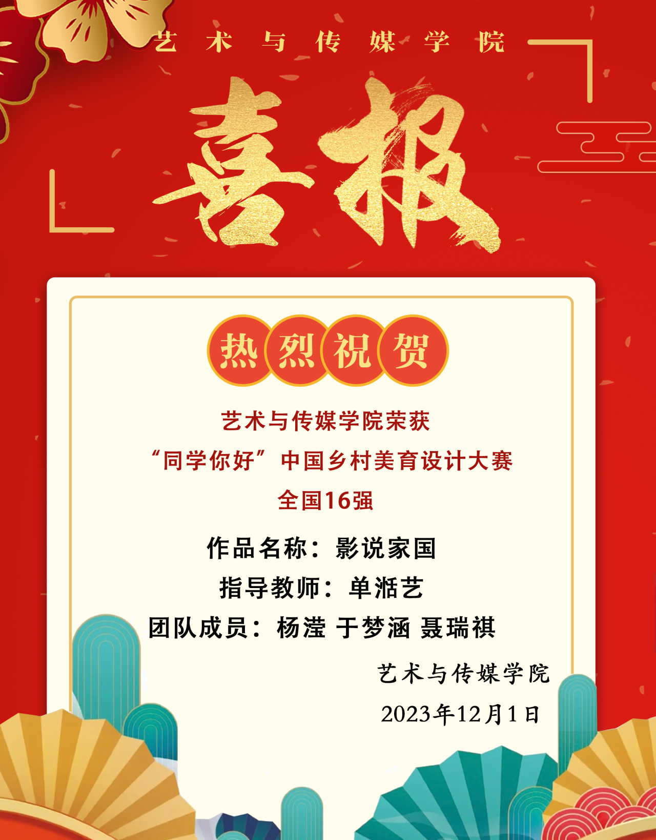 喜报!热烈祝贺贝博体育 荣获“同学你好”中国乡村美育设计大赛全国16强!