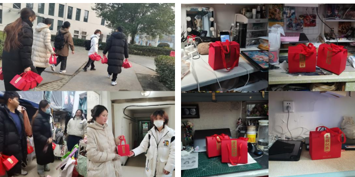 随后,学工组老师及学生党员等一行人深入2020级考研学生宿舍,将暖心礼盒送给同学手上或放到桌上,鼓励同学们考研加油,保持心态。暖心礼盒内有香橙、旺仔牛奶、地大口罩以及祝福贺卡,每一份礼物都饱含着贝博体育