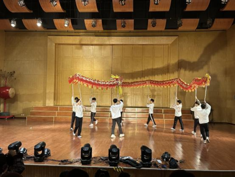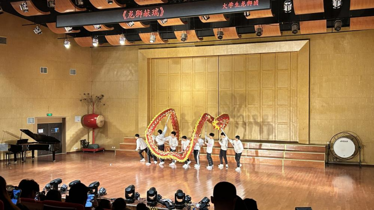 锣鼓声声除旧岁,招财纳福醒狮来。大学生龙狮团带来的表演《龙狮献瑞》率先登场,舞台上,队员们身着节日盛装,一条祥龙则在空中盘旋,仿佛要破空而去,激情饱满地展示着传统舞龙舞狮技艺。在这场充满力量与激情的表演中,我们感受到了传统文化的魅力,观众们欢呼声不断,纷纷为大学生龙狮团的精彩表演点赞。