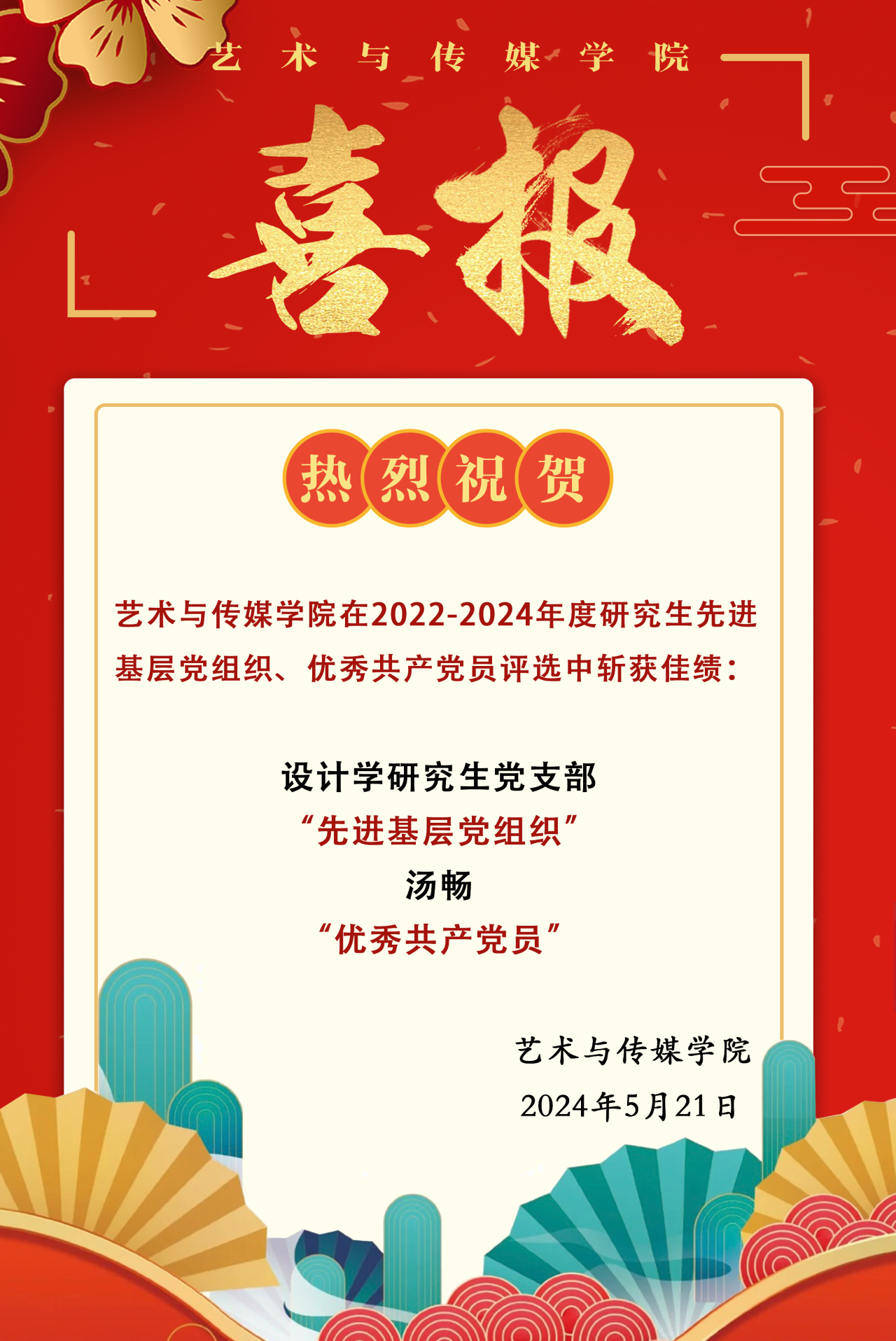 “有一分光,发一分热”,作为一名党员,汤畅充始终努力发挥先锋模范作用,坚定理想信念。工作室外,她是热情服务师生的班级班长,是积极推进班级团学工作的团支部组织委员,是为设计学研究生党支部党建工作兢兢业业的支部书记,是以身作则的本科生班级助教......汤畅同志勤奋学习,带动群众,努力从政治、学习、工作、生活各方面发挥好先锋模范带头作用,树立了一个良好的学生党员形象。无论担任何种职位,汤畅充用效率实现工作学习“两不误”,用初心守护师生党员“心诚坚”。