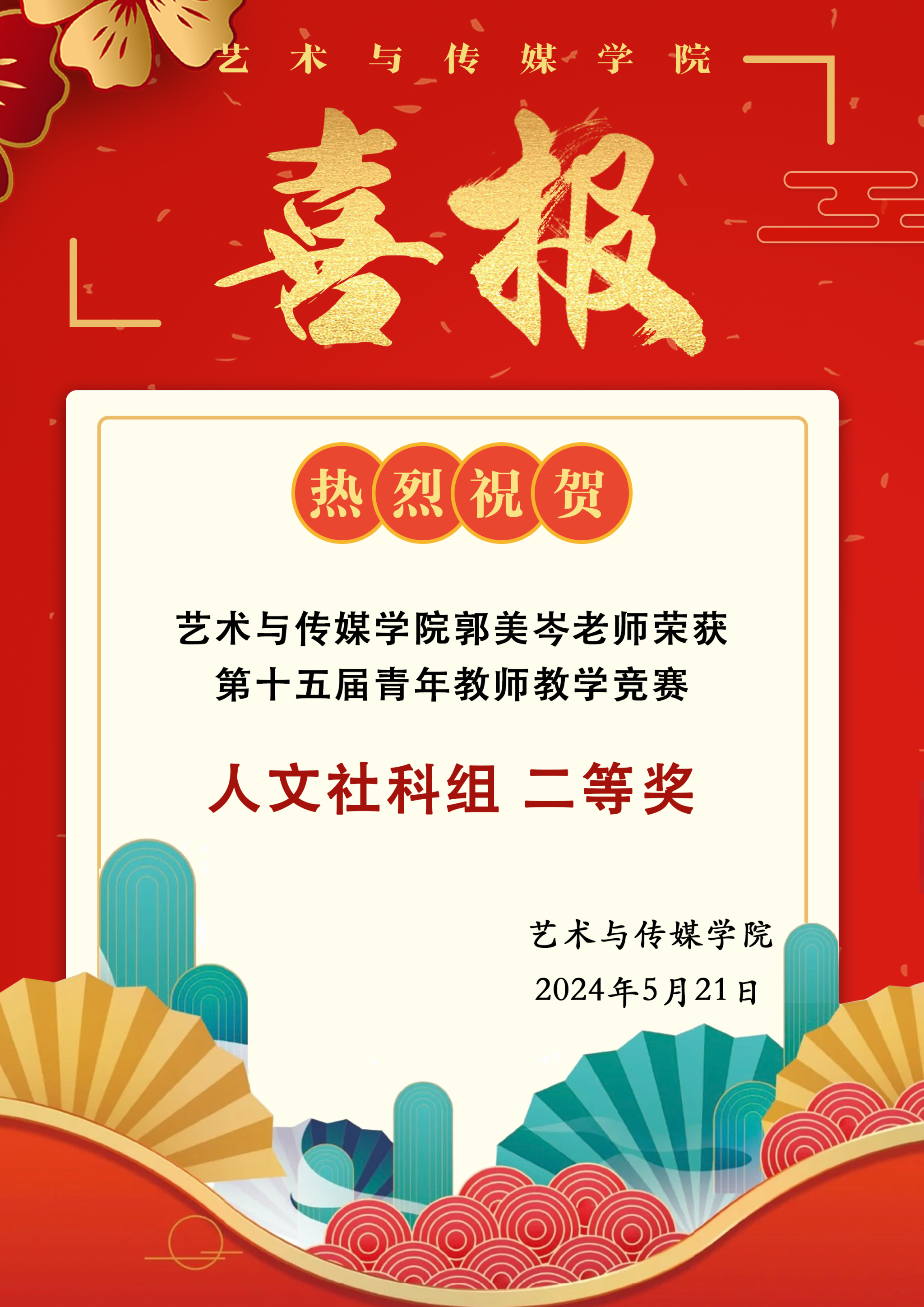喜报|热烈祝贺贝博体育 郭美岑老师在第十五届青年教师教学竞赛中荣获人文社科组二等奖!