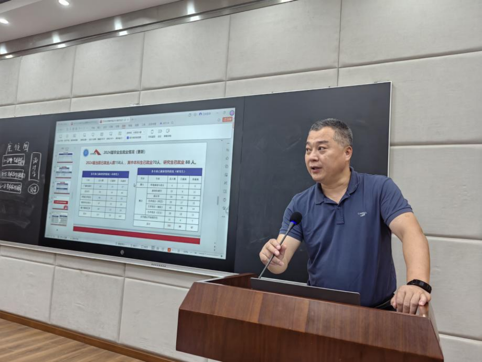 党委副书记边建华、毕业年级专兼职辅导员及全体本科生、研究生参与会议,会议由辅导员单湉艺主持。