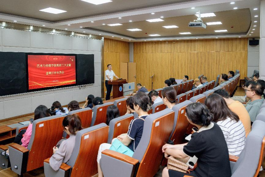 暑期工作布置会在艺媒楼1104报告厅召开,全体教职工参加会议。党委书记晋曦主持会议。