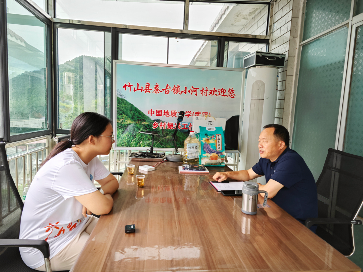 实践团在中国地质大学(武汉)驻秦古镇小河村工作队队长马红祥、队员梁凯的带领下前往竹山县秦古镇小河村,了解当地乡村振兴工作成果与发展现状。
