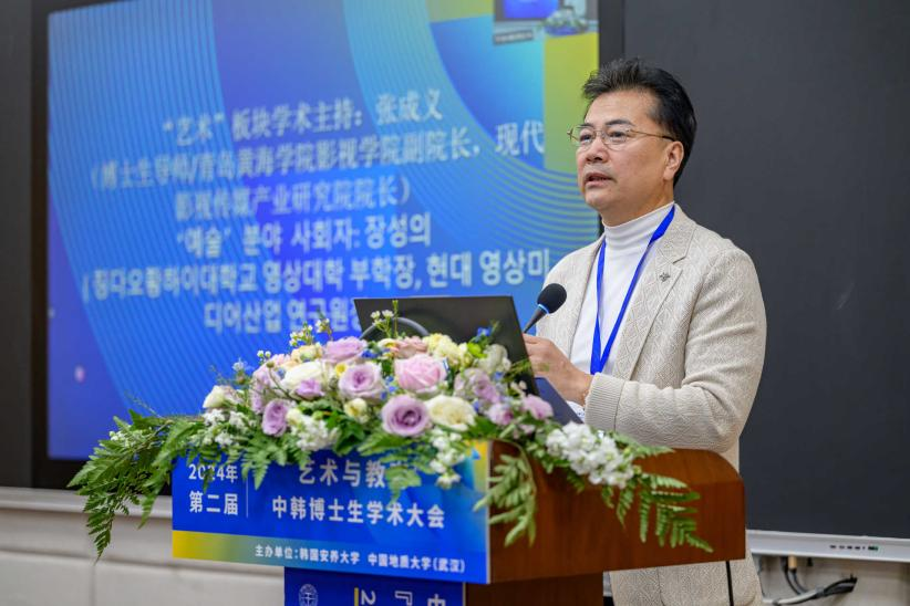 1104学术报告厅和韩国安养大学美丽领导馆4楼会议厅线下会场共同举办“2024年第二届中韩博士生学术大会”。本届会议主题为“艺术与教育”,青年学者们围绕“AI时代”“历史”“艺术”“设计”“教育”“融汇”板块开展学术交流。