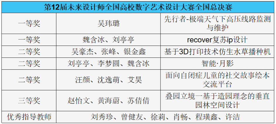 师生凭借创意与设计实力,斩获十余项奖项。其中,学生作品荣获一等奖2项,二等奖3项,三等奖1项;同时贝博体育