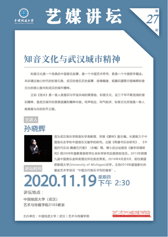 [2020年11月19日]艺媒讲坛(27期):武汉音乐贝博体育 孙晓辉教授讲座