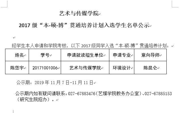 贝博体育 2017级“本-硕-博”贯通培养计划入选学生名单公示