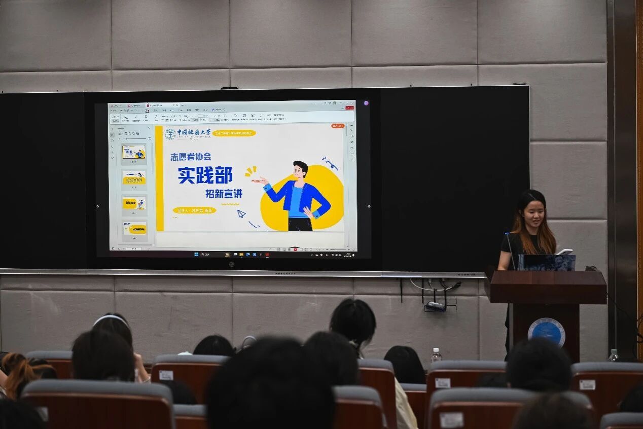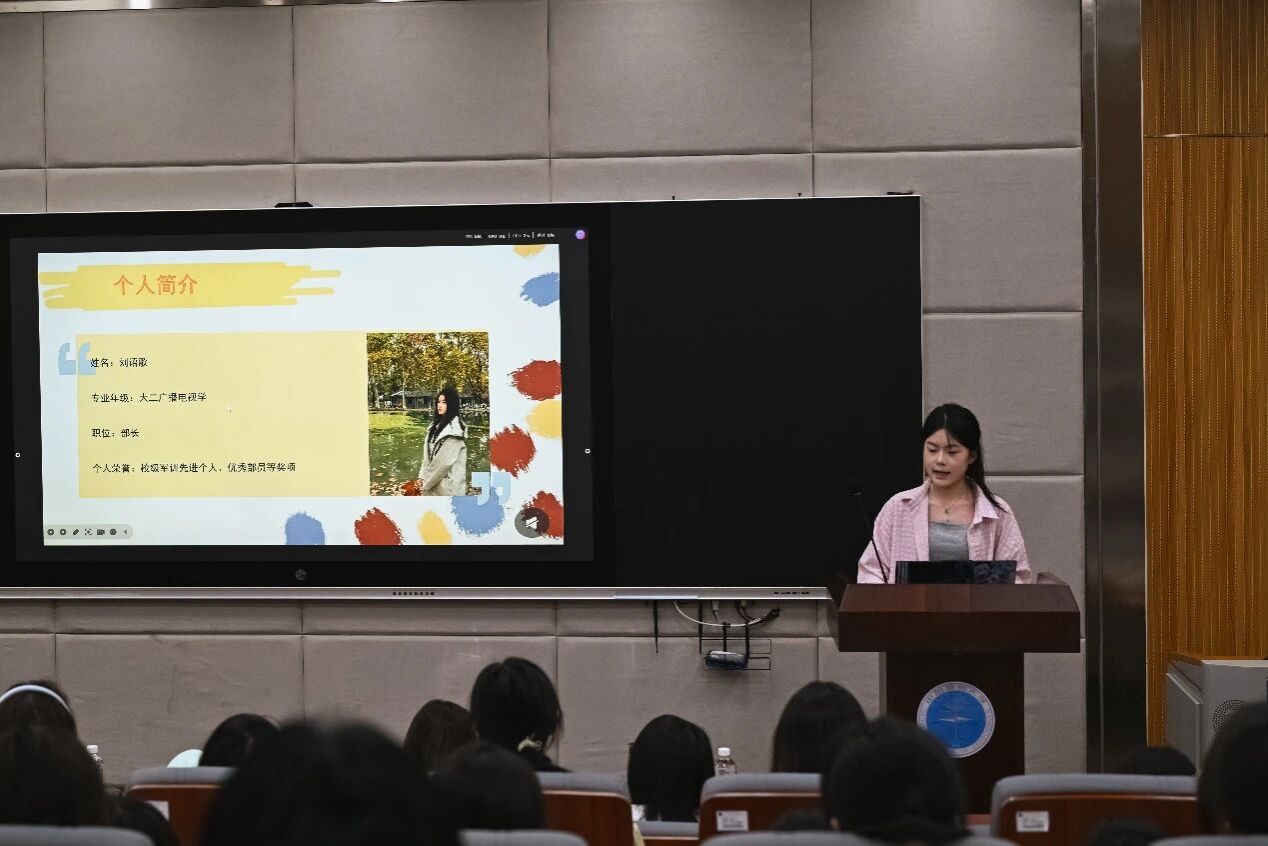 紧接着由学生会和分团委下属的各部门进行宣讲,部长们分别从人员介绍、部门概况和优势、工作属性及内容等方面进行讲解。