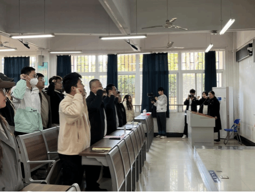 专职辅导员曾戈晖带领学员们重温入团誓词。