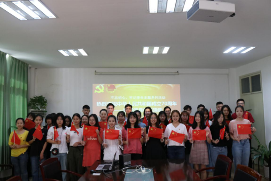 前往弘毅堂,2018级、2017级、2016级和研究生等同学在艺媒楼会议室1209为祖国庆生。