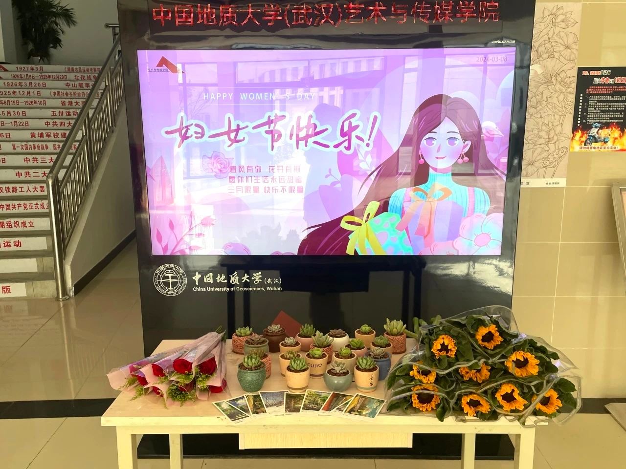 学生会和研究生会举办献花活动。用花束为全院女性师生同胞们送上最真挚的节日祝福,以花爱己,以花悦己,在忙碌的生活中进行简单的放松,在温暖美好的时光中回归心灵之美。