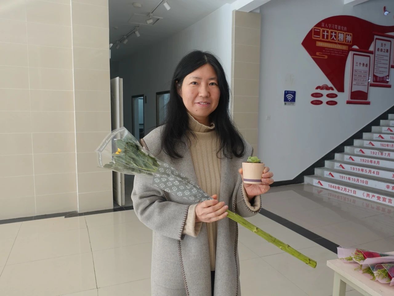 活动现场,女教师和女同学们不仅领取了鲜花,还收获了志愿者们送上的真挚祝福,每位女性同胞都被给予了最温馨的关怀。
