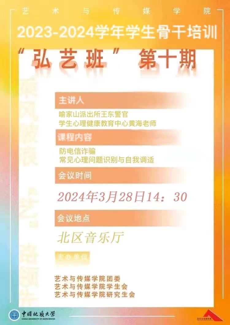 安全和心理健康教育知识讲座暨第十期“弘艺班”学生骨干培训圆满结束。