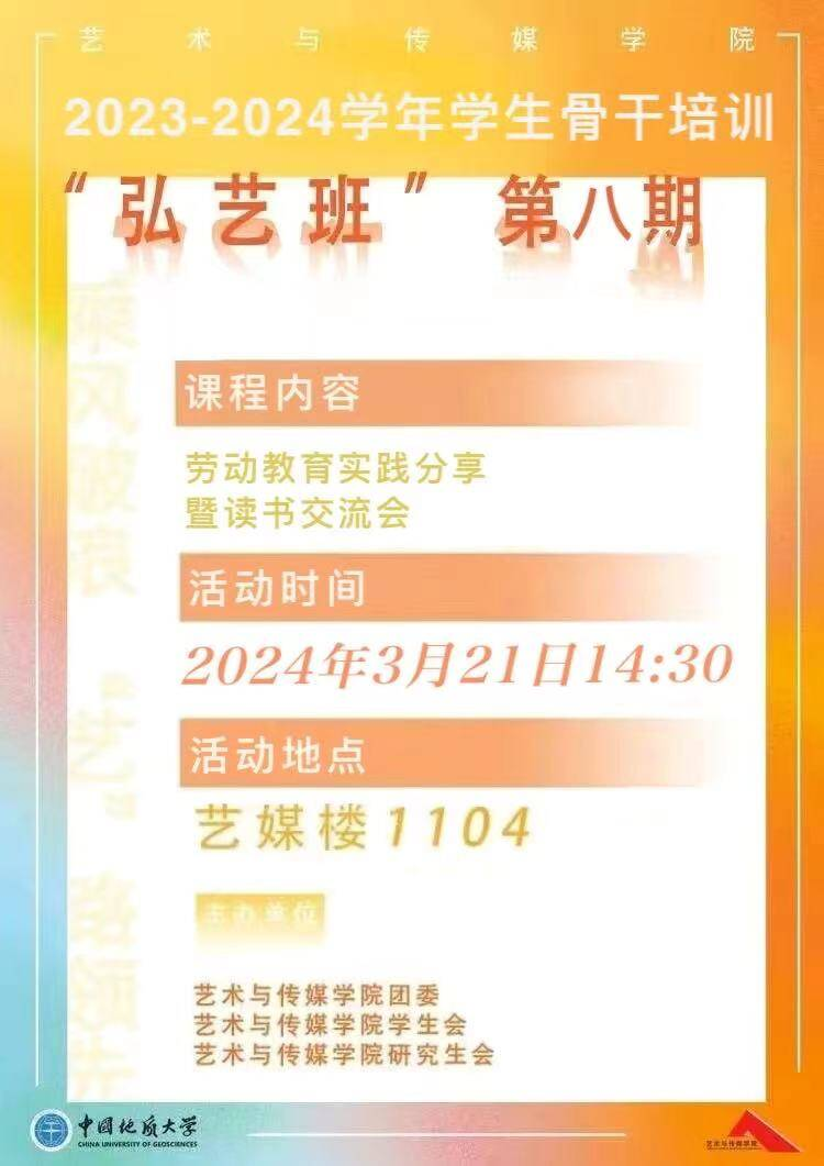 学生第八期骨干培训“弘艺班”劳动教育实践分享与读书交流会在1104报告厅举行。贝博体育