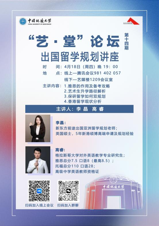 2024年4月18日晚上19:00,“艺·堂”论坛第十四期出国留学经验分享会顺利举行。贝博体育