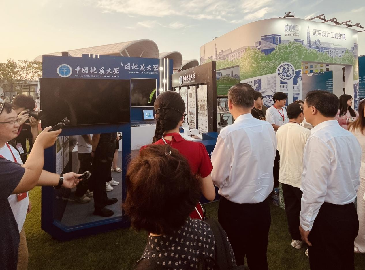 师生在大艺节上进行"星河"主题展示项目,汇聚了视觉传达设计、环境设计、数字媒体艺术和珠宝设计四个专业学生的杰出成果。设计展旨在呈现学生们对星河的深度探索和创新实践。从视觉传达的巧妙构思,到环境设计的空间演绎,再到数字媒体的创意互动,以及珠宝设计的璀璨光芒,每一个细节都彰显着学术的严谨与专业,每一件作品都经过精心构思与制作,通过专业的视角,带来了一场关于"星河"的沉浸式学术与艺术盛宴。布展期间,教育部党组成员、副部长、总督学王嘉毅在我校展区前驻足观看。