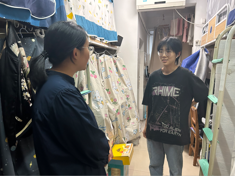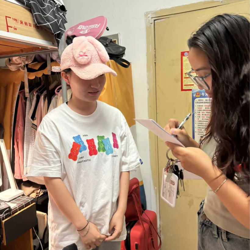 党委副书记边建华的带领下,学工组全体专兼职辅导员深入学生宿舍,了解学生思想动态、学生假期动向,排查假期期间的寝室卫生、安全隐患等。
