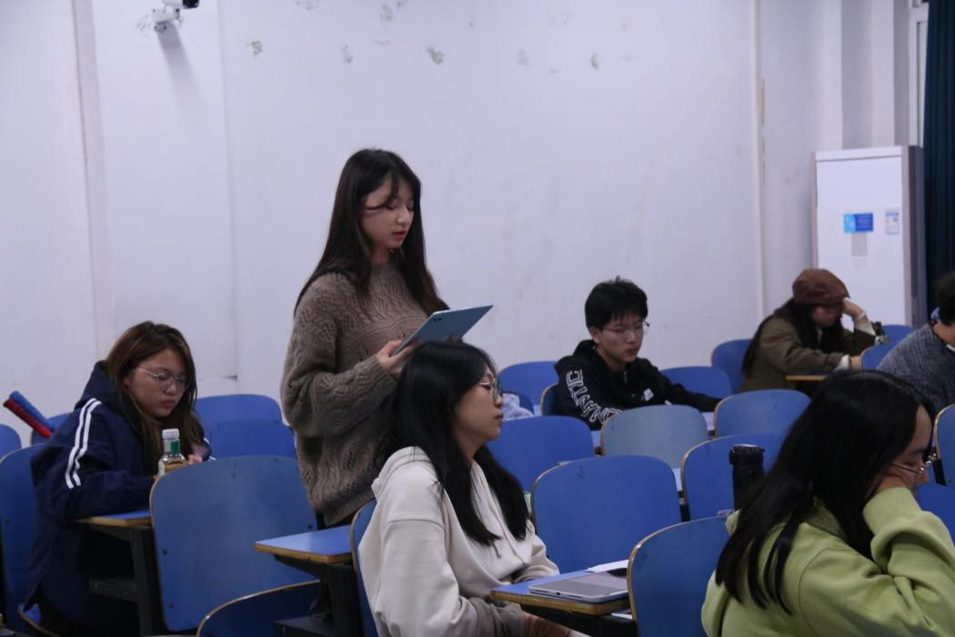 第六场比赛在北综楼305教室举行,由陈雅雯、敖汉斌、唐翼舟担任评委。本次辩题是“年轻人应该先攒钱/享受生活”,正方“我方观点都队”和反方“从容应队”就此辩题展开了激烈的辩论。正方围绕年轻人应该先攒钱这一观点引经据典并结合热点,让观点既有深度又具时代感。正方辩手清晰地指出了攒钱在诸多方面的优点,提出攒钱可以提高抗风险能力,为年轻人的未来提供了坚实的保障,让他们在面对生活的不确定性时能够更加从容不迫。反方的论述也同样精彩,他们认为通过享受世界探索世界,无疑为年轻人打开了一扇扇通往未知的大门。在这个过程中,他们能够拓宽视野、丰富阅历,从而实现真正的自我成长,这远比仅仅将目光局限于攒钱更为深远和有意义。反方辩手还引用名言、调查和具体实例的做法,更是为观点增添了坚实的依据。最终,正方“我方观点都队”赢得比赛,正方三辩黄子怡同学凭借其出色的表现荣获最佳辩手的称号。
