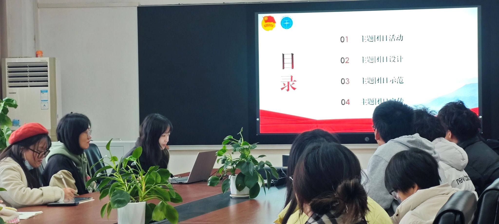培训的最后一项,由高慧和金煦婷为团学骨干培训。主要从主题团日活动的设计、主题团日的示范、主题团日的宣传三个方面给同学们进行讲解,让各班团支书更好地带领本班同学上好主题团日,学好团知识。