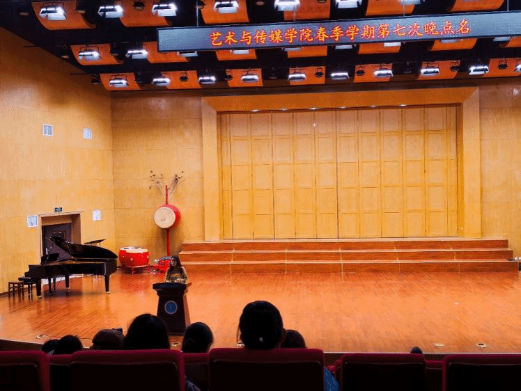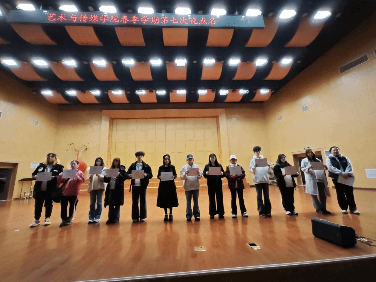 在音乐厅组织开展春季学期第七次晚点名活动。本次活动围绕保研经验分享、早操荣誉表彰、日常管理规范三方面内容展开,学工组辅导员曾戈晖、兼职辅导员吴健以及全体2024级本科生参加本次活动,视觉传达设计专业 2021 级优秀学生李怡雯受邀担任分享嘉宾。