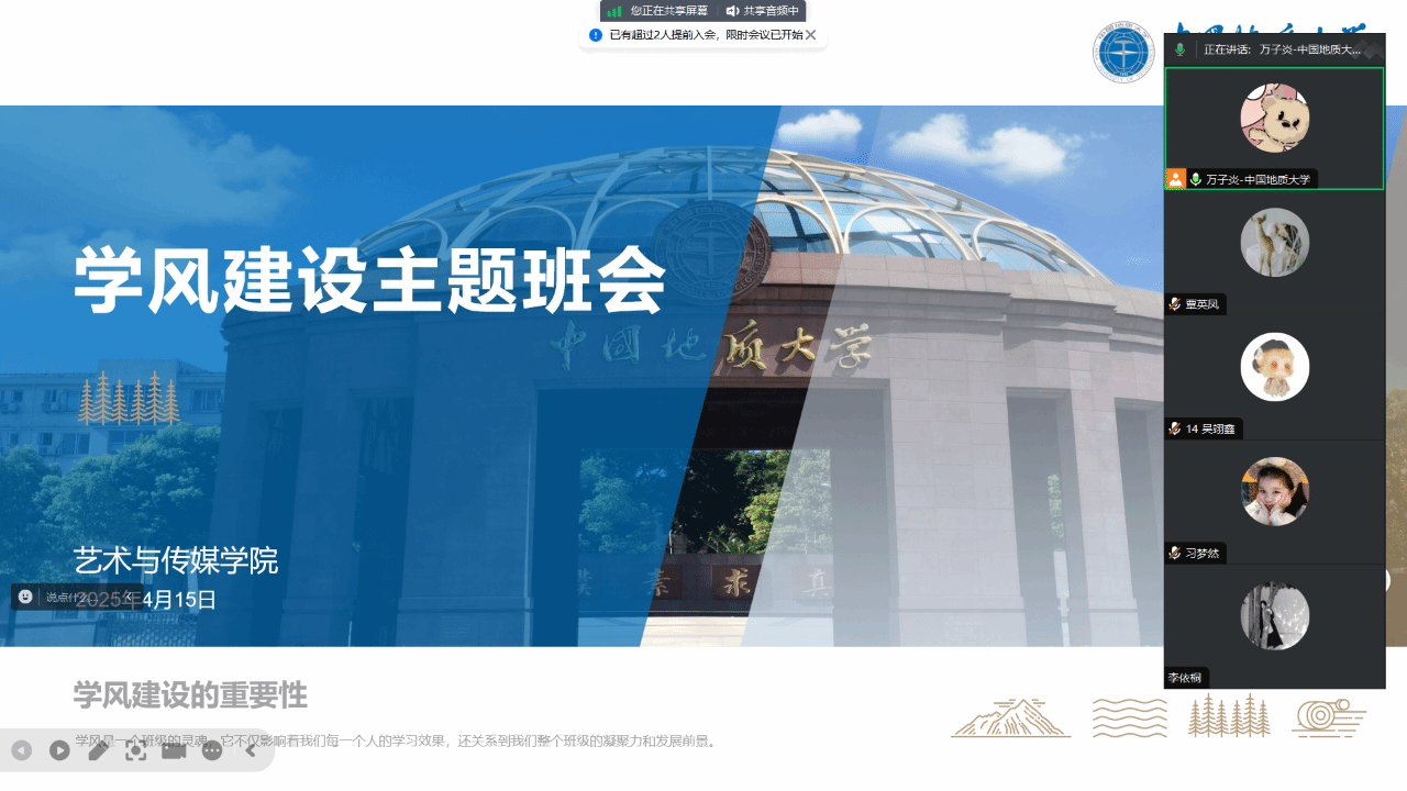 将协同各班委进一步强化落实本次班会收集的意见与建议,努力构建“严在地大、学在艺媒”的良好学风氛围,构建“学术有规范、成长有支撑”的全方位育人格局,助力研究生成为德才兼备的高素质人才。